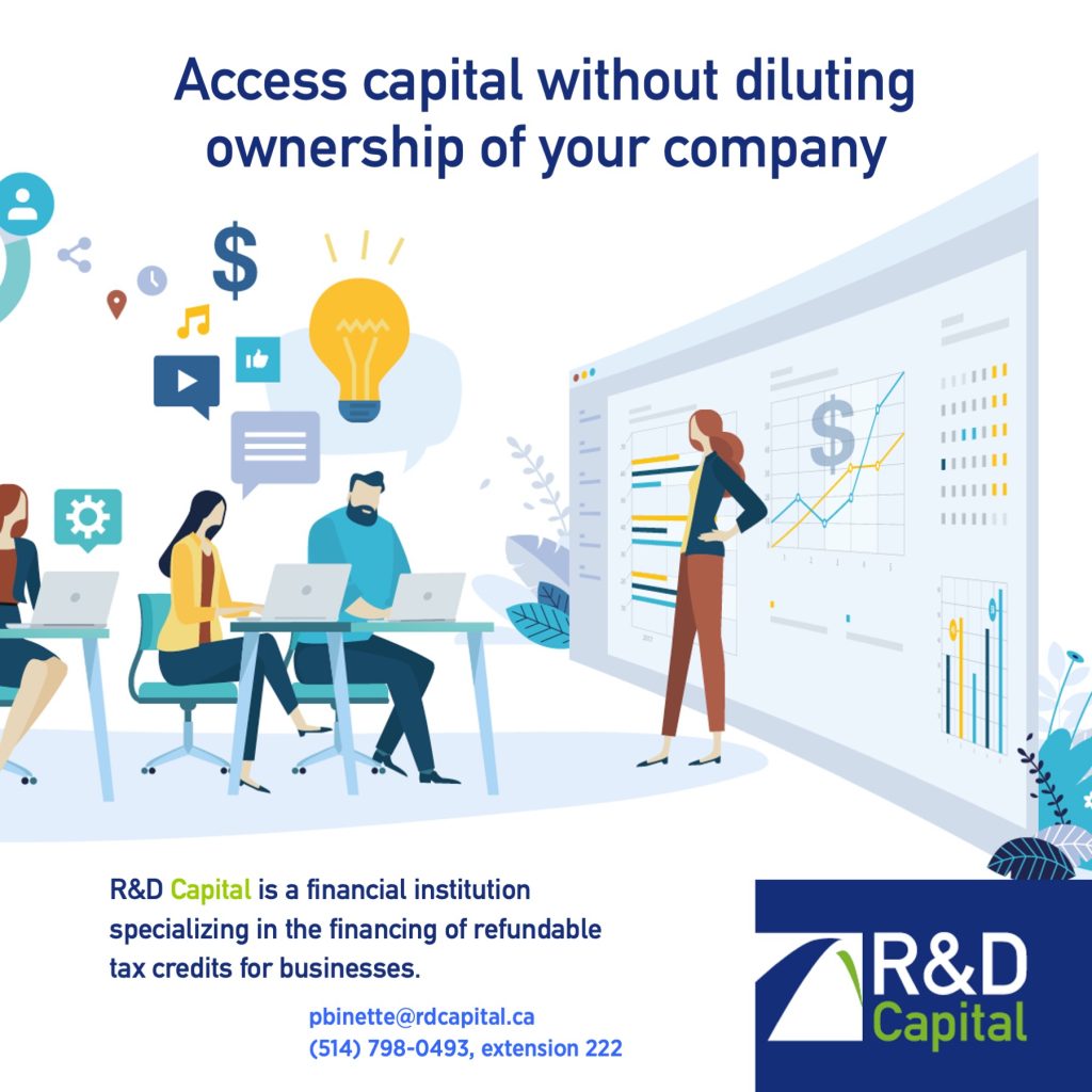 It is sometimes necessary and wise to rely on the support of investors to inject new funds into your business, particularly when banks are shying away. However, this option often results in diluting your organization’s ownership and complicating its governance structure. In contrast, financing your refundable tax credits is a simple and easy way to access capital, when you need it, that has no impact on your company’s ownership or governance. While not always an alternative to an injection of investor funds, a sound tax credit financing strategy can play an advantageous complementary role for your liquidity needs and help limit the dilution of your company’s ownership.